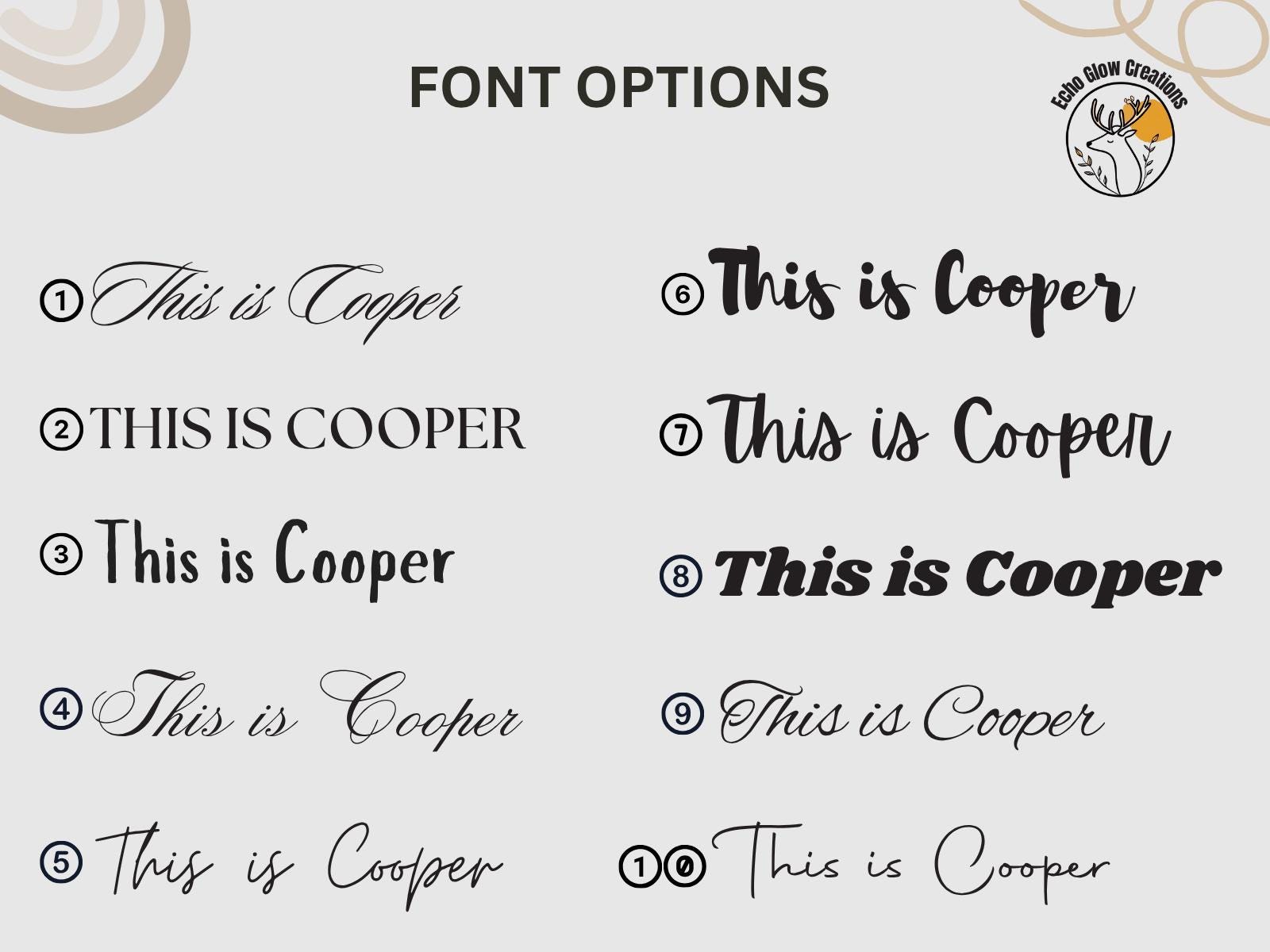 Looking for more custom options, like colors or styles not listed? Feel free to reach out ā weāre happy to help!